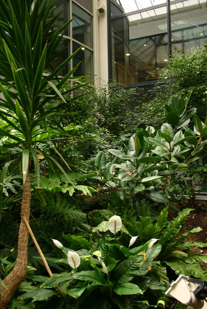 The nice patio at my company. You can go there to have a smoke, that's really relaxing ! (I'd love to set up a hammock and have a nap in those plants! =)