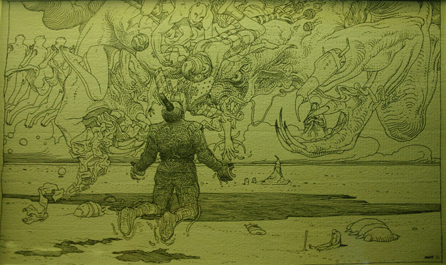 This is a hommage to Myiazaki by Giraud for Nausicaa (there is the same from Miyazaki the other way round but it was not as cute)